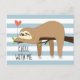 Cute, lazy sloth bear design for Valentines Day Postcard