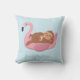 Cute Lazy Sloth Pink Flamingo Float Summer Pillow