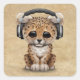 Cute Leopard Cub Dj Wearing Headphones Square Sticker