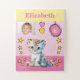 Cute leopard photo name pink yellow kids jigsaw puzzle