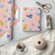 Cute Leopards with jungle leafs on Pink Wrapping Paper