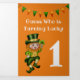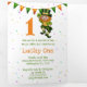 An adorable invitation for your special boy or girls first birthday featuring a ginger haired leprechaun doing a jig at finding a lucky shamrock. He is wearing a vibrant green and faux gold outfit and has orange and green bunting above his head and rainbow coloured confetti around him. The inside includes an invitation and two games. The first is the time capsule to be opened on his / her 18th birthday and the second is a game of firsts. Make sure to ask your guests to complete the time capsule prior to the party and to only play the firsts game with everyone at your Childs birthday.