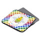 This awesome laptop sleeve features a rainbow coloured graphic design image of a bee. The bee has a yellow body with black eyes, legs and antennae and 5 stripes on its belly, one each in red, orange, green, blue and purple. There is rainbow coloured text around the bee that says "Bee proud Bee who you are"