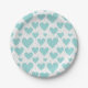 Cute Light Blue Hearts and Confetti Pattern Party Paper Plate