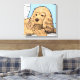 Here's a cute wrapped canvas for anyone who loves spaniels, particularly cocker spaniels. It features an illustration of a light-brown cocker spaniel leaning against a blue pillow. A fun decoration for a little boy's room.