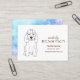 Minimalist , original matte paper professional square business card.Black and white dog drawing. Blue and purple background - marble photo.