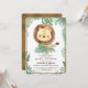 Super Cute Lion Baby Shower Invitation - He is the king of the jungle and soon the king of you home and your hearts! A little King is on his way. Start your celebration the right way with our very cute invitation. Featuring a fierce little baby lion king surrounded by fresh green tropical jungle leaves. The back of the card has a faux cardboard texture with a subtle green leaf pattern. Just perfect for a boy baby shower invitation. Roar!