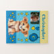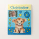 Cute lion photo name blue yellow kids jigsaw puzzle