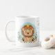 The "Cute Lion Wearing Crown Best Dad Ever Personalised Coffee Mug" is the perfect gift idea for Father's Day or any other occasion to show your appreciation to your dad. This adorable mug features a cute lion sitting amidst a beautiful flower design, symbolising strength and love. The best part is that you can personalise it by adding your dad's name in the centre, making it a unique and thoughtful present. The mug also includes the heartwarming phrase "Best Dad Ever" in the centre, reminding your dad of how special he is. With its customised design and heartfelt message, this coffee mug is sure to bring a smile to your dad's face every time he enjoys his favourite beverage.