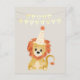 Cute Lion Wearing Party Hat Birthday Banner Roar Postcard