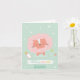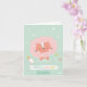 Cute welcome little baby card with pink lion, stars, baby bottle, diaper pins on mint dot pattern
