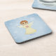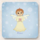 Cute Little Angel & Calligraphy on Light Blue Coaster