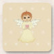 Cute little angel holding a heart with snowflakes on beige background coaster.
