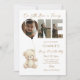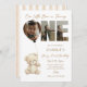 Cute Little Bear Neutral with Photo 1st Birthday Invitation