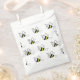 Cute little bee drawing. Custom white favour bags. Baby shower decor idea.
