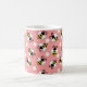 Seamless pattern with cute little flying bees and white daisy flowers decoration on pink background.
