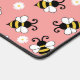 Seamless pattern with cute little flying bees and white daisy flowers decoration on pink background.