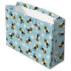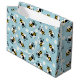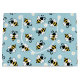Seamless pattern with cute little flying bees and white daisy flowers decoration on light blue background