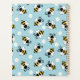 Seamless pattern with cute little flying bees and white daisy flowers decoration on light blue background