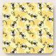 Seamless pattern with cute little flying bees and honeycomb decoration on pastel yellow background