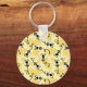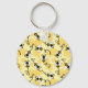 Seamless pattern with cute little flying bees and honeycomb decoration on pastel yellow background