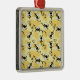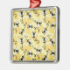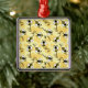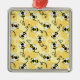Seamless pattern with cute little flying bees and honeycomb decoration on pastel yellow background