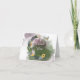 This is a uniquely pretty and versatile thank you card that can be used for just about any occasion. The front features a cute boho style floral wreath with a little bird at the bottom left, and a butterfly at the top right. The wreath is placed on an abstract violet gray and green watercolor stain, with your custom text at the center. The inside of the card is left blank for your own message.