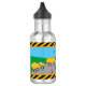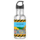 Got a little boy who loves construction vehicles? This custom water bottle is perfect! The bottle has a dump truck, cement truck, and excavator, all working together at a road construction site. A young boy stands near the front with a stop sign to help stop traffic. There are also orange safety traffic cones and background mountains and blue sky. Finish the water bottle with your young man's first name.