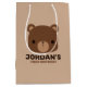 Cute Little Brown Bear with Personalised Name Medium Gift Bag