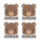 This design features cute little brown bear with personalised name in brown modern sans serif font style.