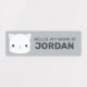 This design features cute little cat with personalised name in grey modern sans serif font style on light grey background.