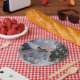 Cute little child girl and the Christmas tree .jp Paper Plate