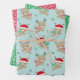 Cute Little Christmas Reindeer on blue Wrapping Paper Sheet