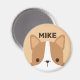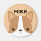 This design features cute little corgi dog cartoon illustration with personalised name in brown modern sans serif font style on light brown background.