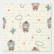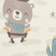 Cute Little Cowboy Sheriff Bear with lasso, cactuses, horseshoes and stars on textured cream background.