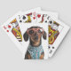 Cute Little Dachshund With Red Glasses Playing Cards