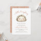 This cute baby shower invitation features a watercolor illustration of smiling kawaii dim sum dumpling. Above, the words "a little dumpling" appear in trendy terracotta handwriting script. Personalise the text with the name of the mum-to-be in terracotta script and the details in brown sans serif font. The back of the card features a pattern of white hand-drawn stripes on a terracotta background. Ideal for a gender-neutral baby shower.
