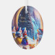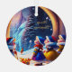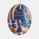 This Christmas ornament features cute little gnomes in a cave. They look to the cave exit in the snowy winter landscape and expect the Christmas Eve. Thickly wrapped in colourful clothes. A basket with food stands between them. The scene is reminiscent of a fairy tale. Cute and unique Christmas Ornament and also a pretty, small gift for family and friends!