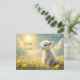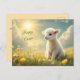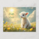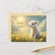 Cute little Easter lamb in a flower meadow Holiday Postcard