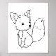 Cute little fox with big ears and bushy tail is sitting in a dog-like pose. Made for easy colouring.