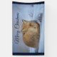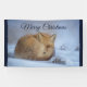A banner which says Merry Christmas - with a darling nature photograph featuring a cute little red fox all curled up in a ball resting on the cold winter snow.