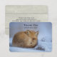 A thank you card with a darling nature photograph featuring a cute little red fox all curled up in a ball resting on the cold winter snow.