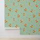 Cute Little Fox Green Pattern Wallpaper