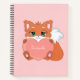 Cute little fox holding a heart on light pink Notebook. Text can be personalised. Fox stands for wisdom!
