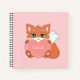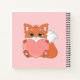 Cute little fox holding a heart on light pink Notebook. Text can be personalised. Fox stands for wisdom!
