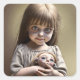 Cute Little Girl with Big Eyes and Creepy Doll Square Sticker