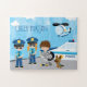 Give your little policeboy or policegirl his or her own policeman-themed personalized jigsaw puzzle! Puzzle has two police officers -- one a boy and one a girl. Both are wearing sunglasses, hats, and have badges, and one is holding handcuffs. There is a prisoner next to the officers as well as a police dog and a cop car. Surveying the scene from the air is a policeman helicopter. Customize the puzzle with your son or daughter's name, preceded by the text Chief or the text of your choice.