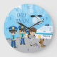 Cute Little Kid Cartoon Policeman with First Name Large Clock