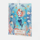 Personalised cute little mermaid under the sea with coral fish watercolor design. The mermaid is surrounded by colourful coral formations sway gently, and the fish dart about, creating a captivating underwater world.