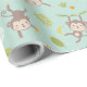 Cute Little Monkeys with bananas & leafs mint Wrapping Paper